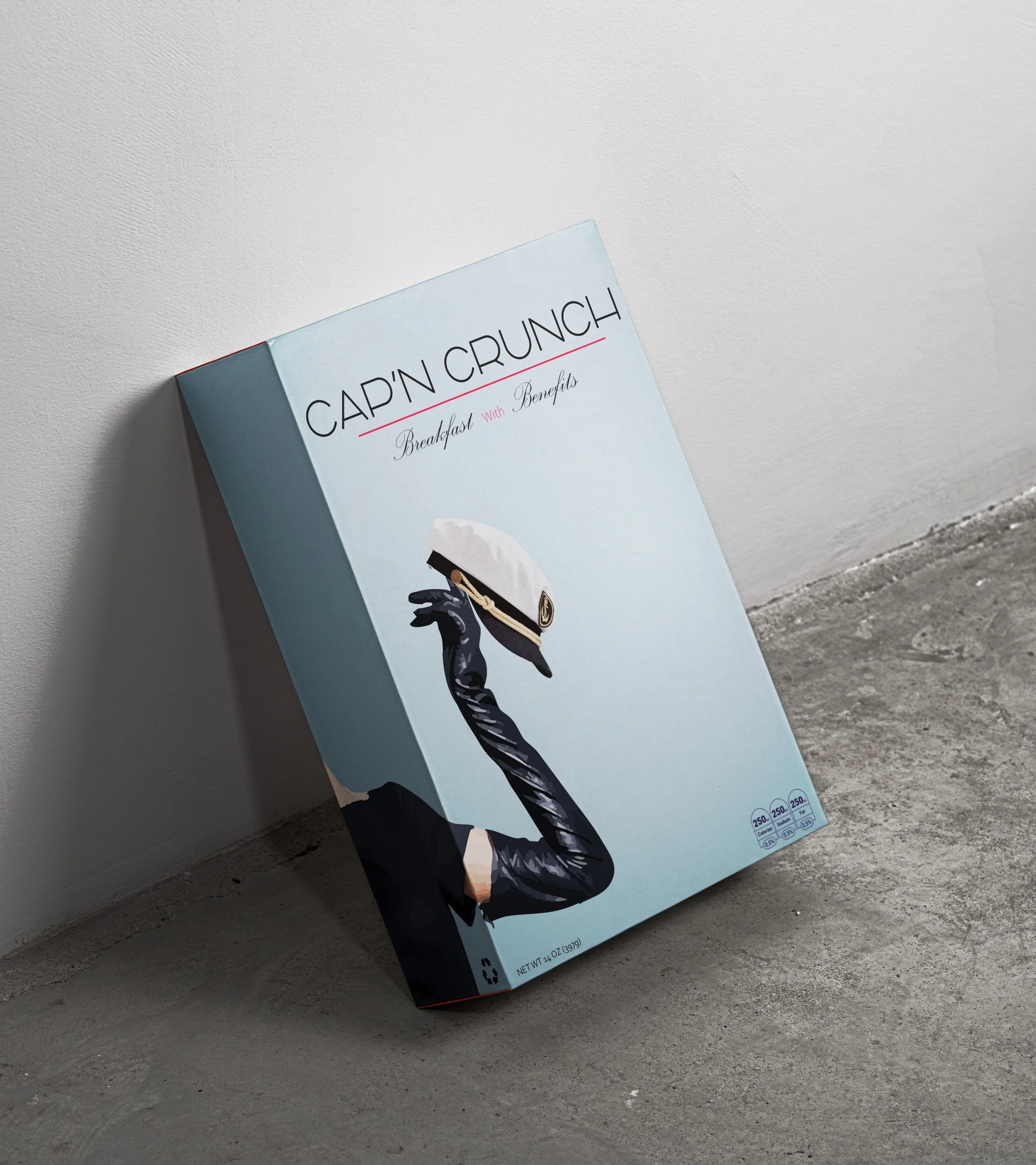 Rebrand Cap’n Crunch for an adult audience. Develop a unique packaging concept and promotional strategy that feels sophisticated, humorous, and culturally relevant—something adults want to buy, eat, and talk about.