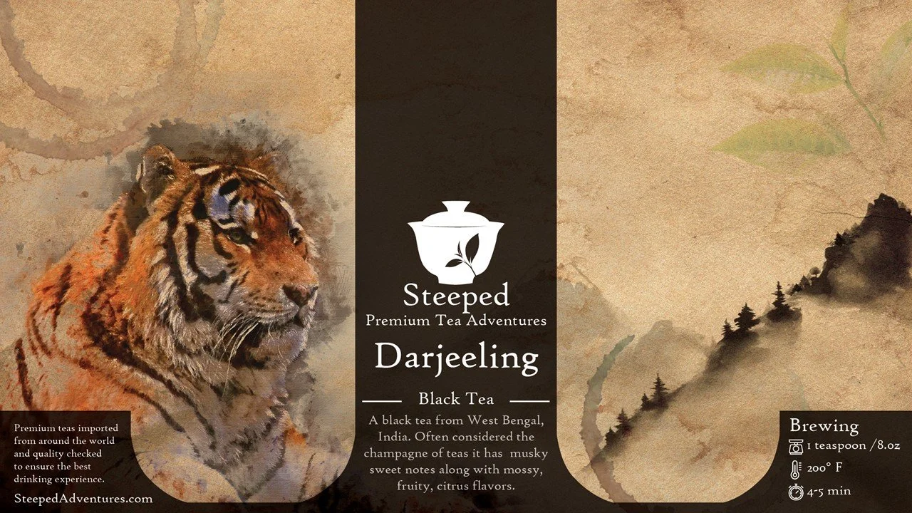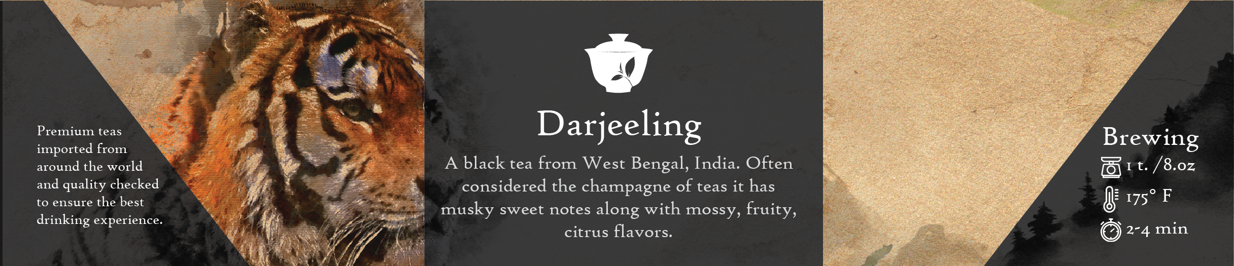 Black tea usually represents strength, boldness and protection. There are a LOT of animals that could have been used in this design, but I chose the tiger because while in Asia it symbolizes strength and power, it also has the western connotation of being the “King of the Jungle”